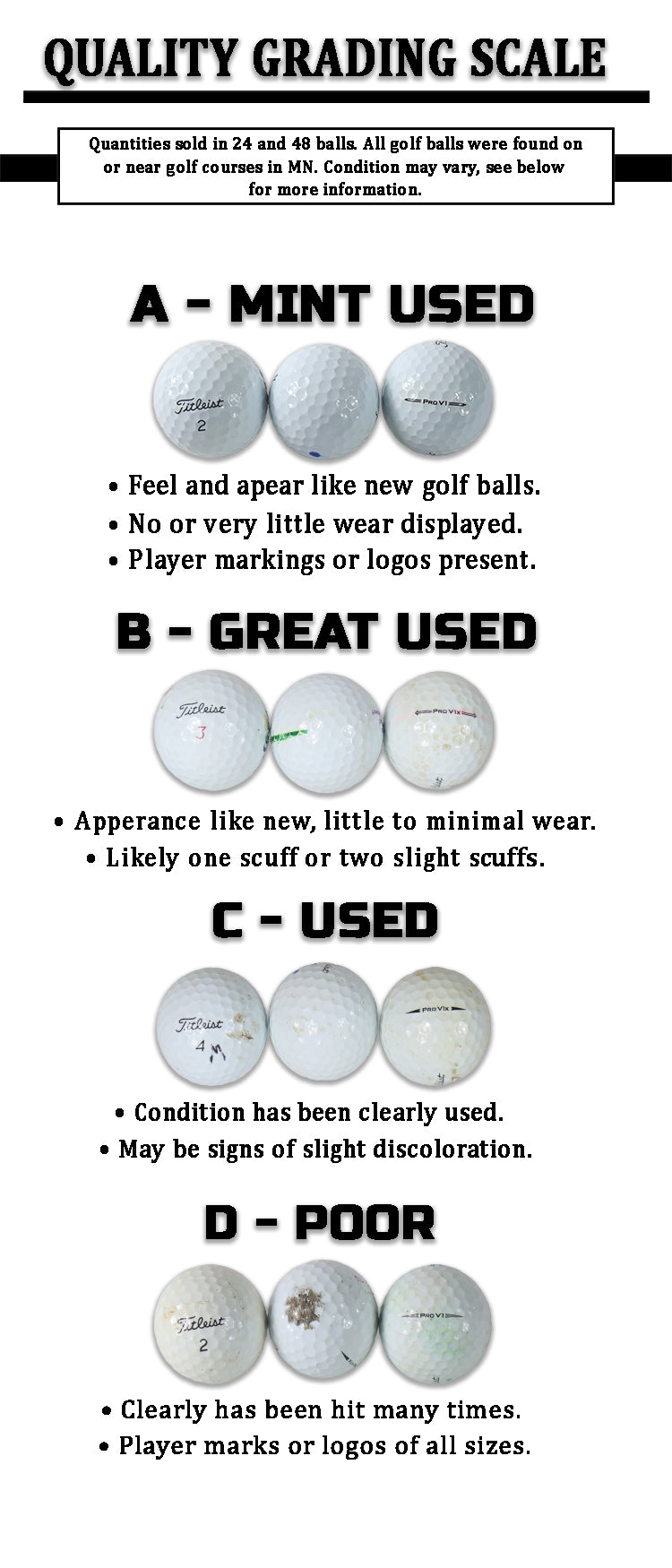 Assorted Golf Balls Grade D (24 Count)